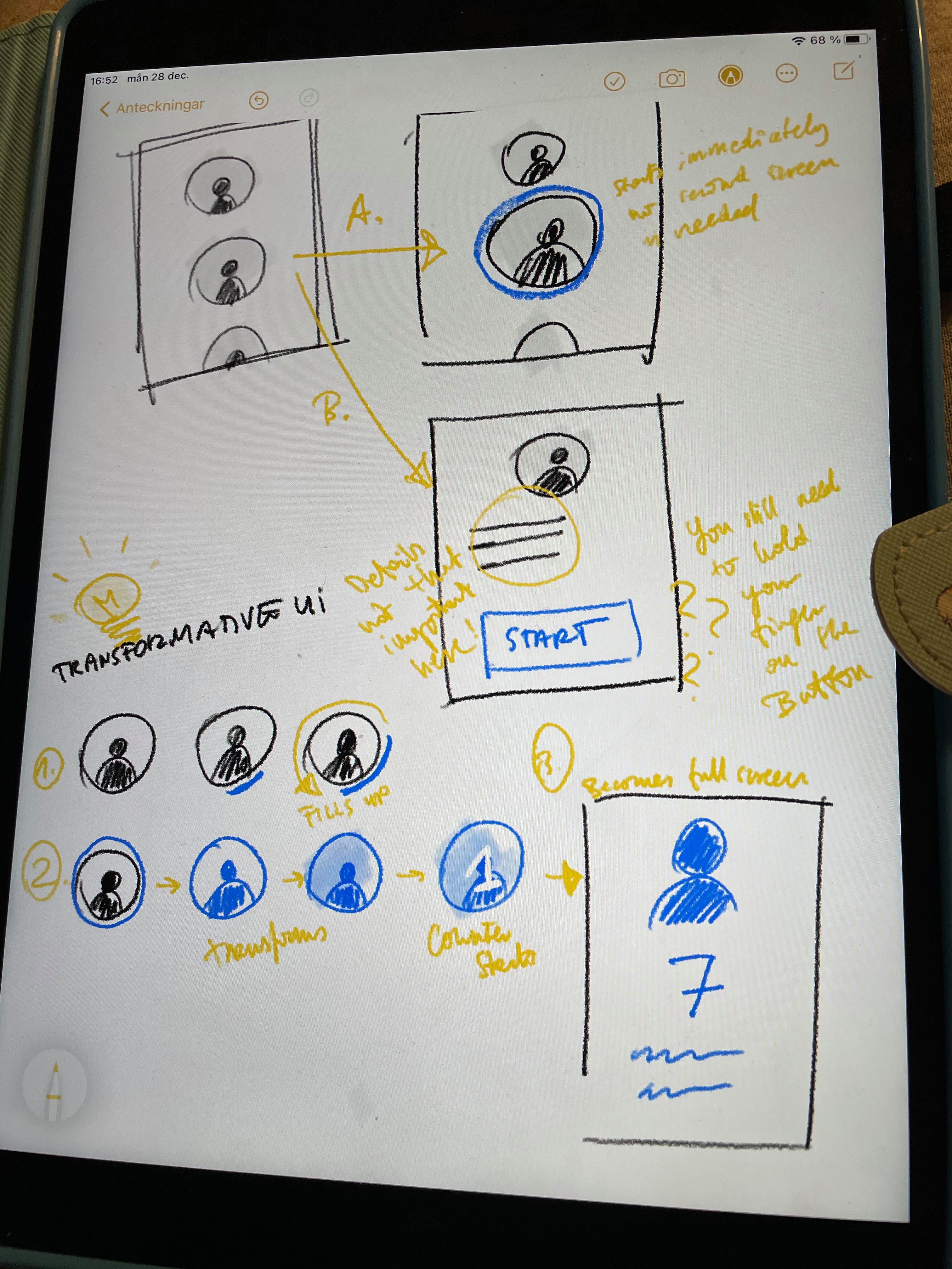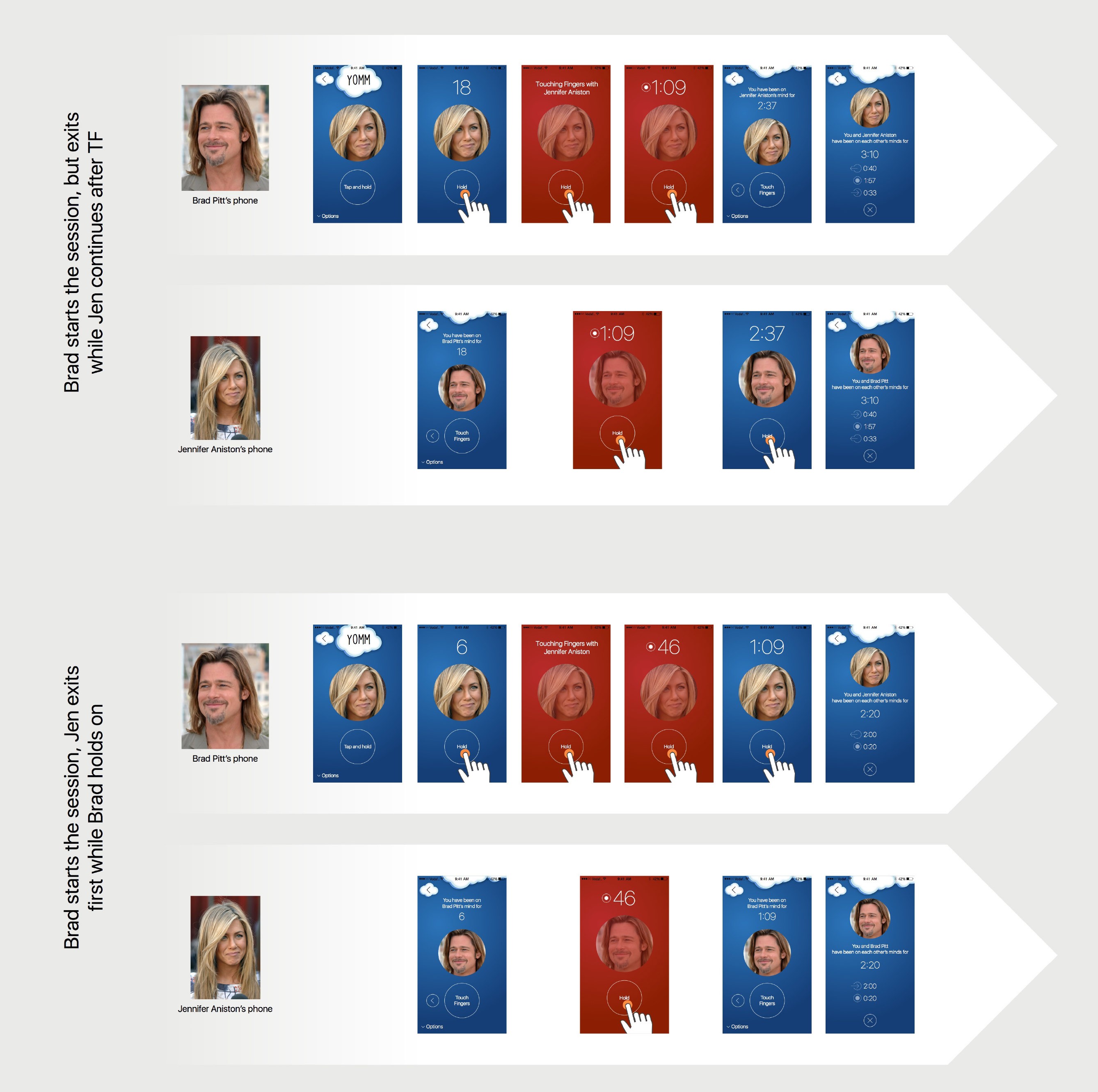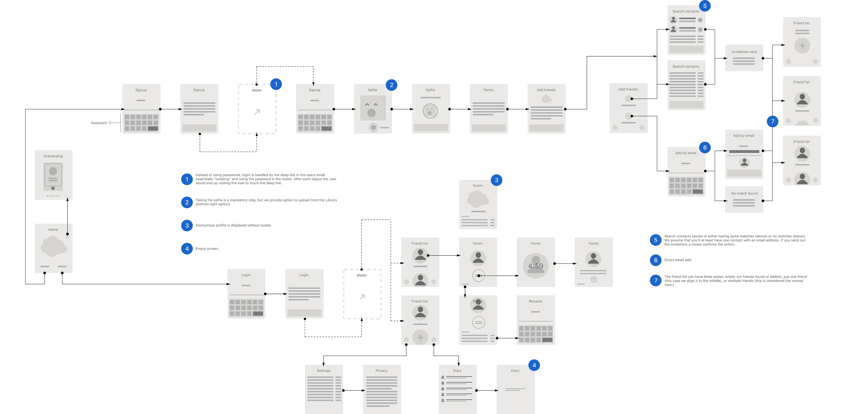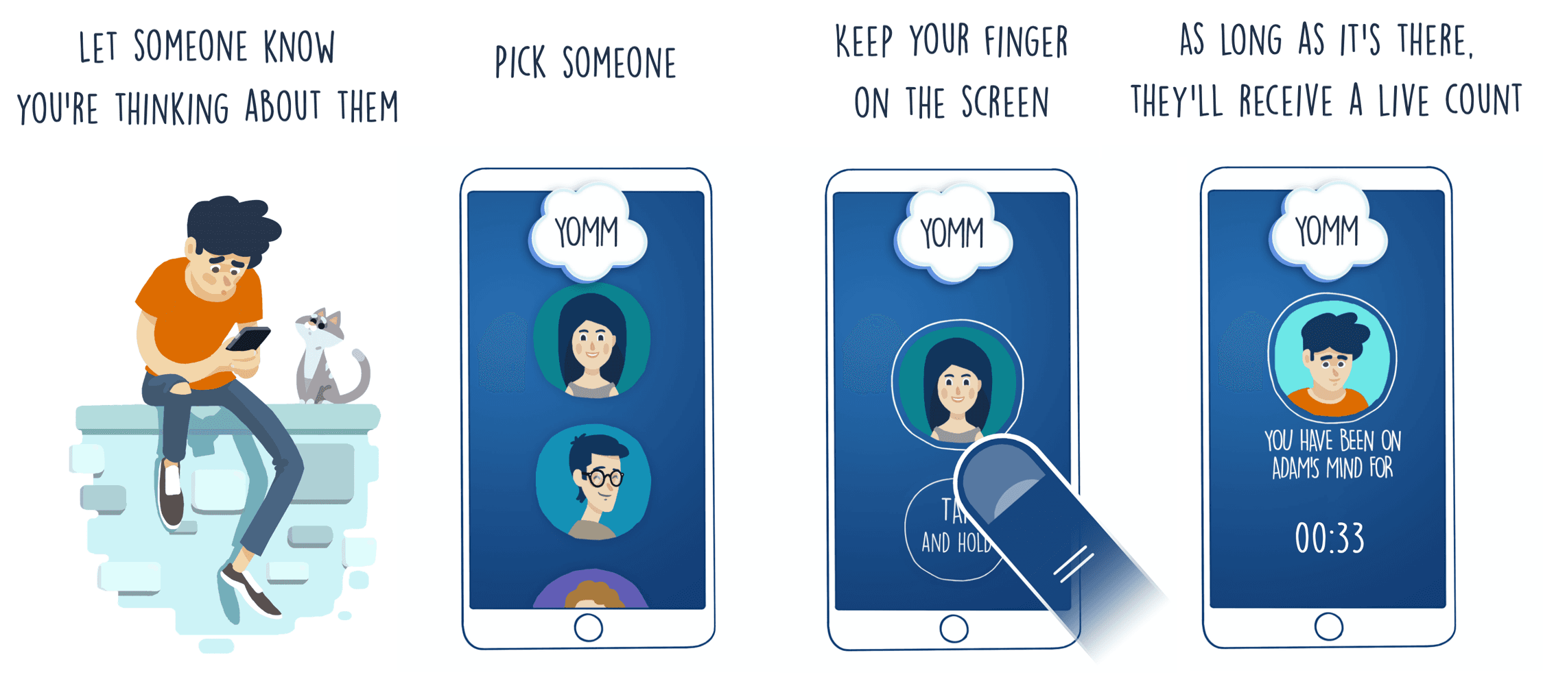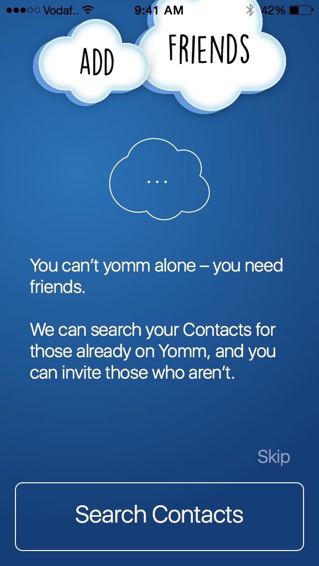 From the outside the user journey doesn't seem much: you see your contact list, front and center, you select a person and then initiate a yomm session.